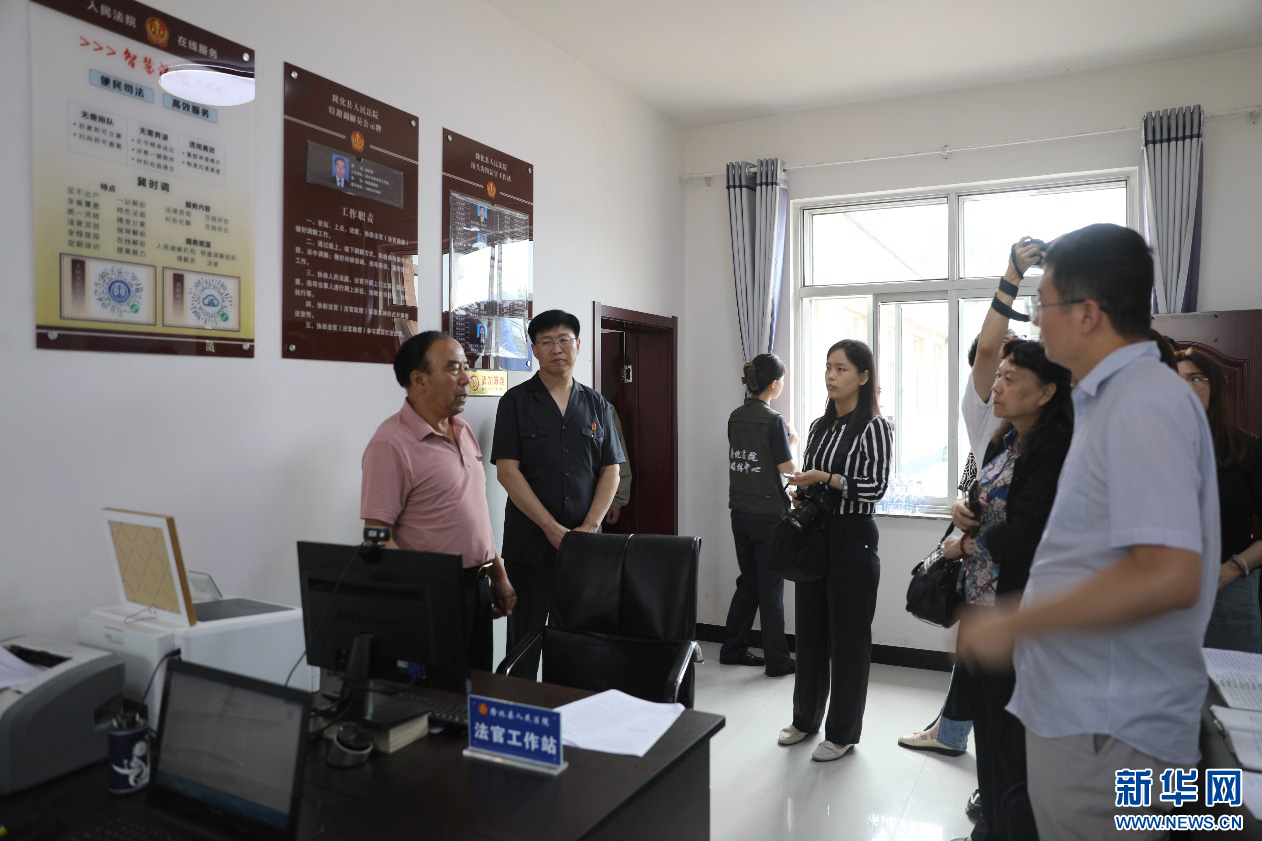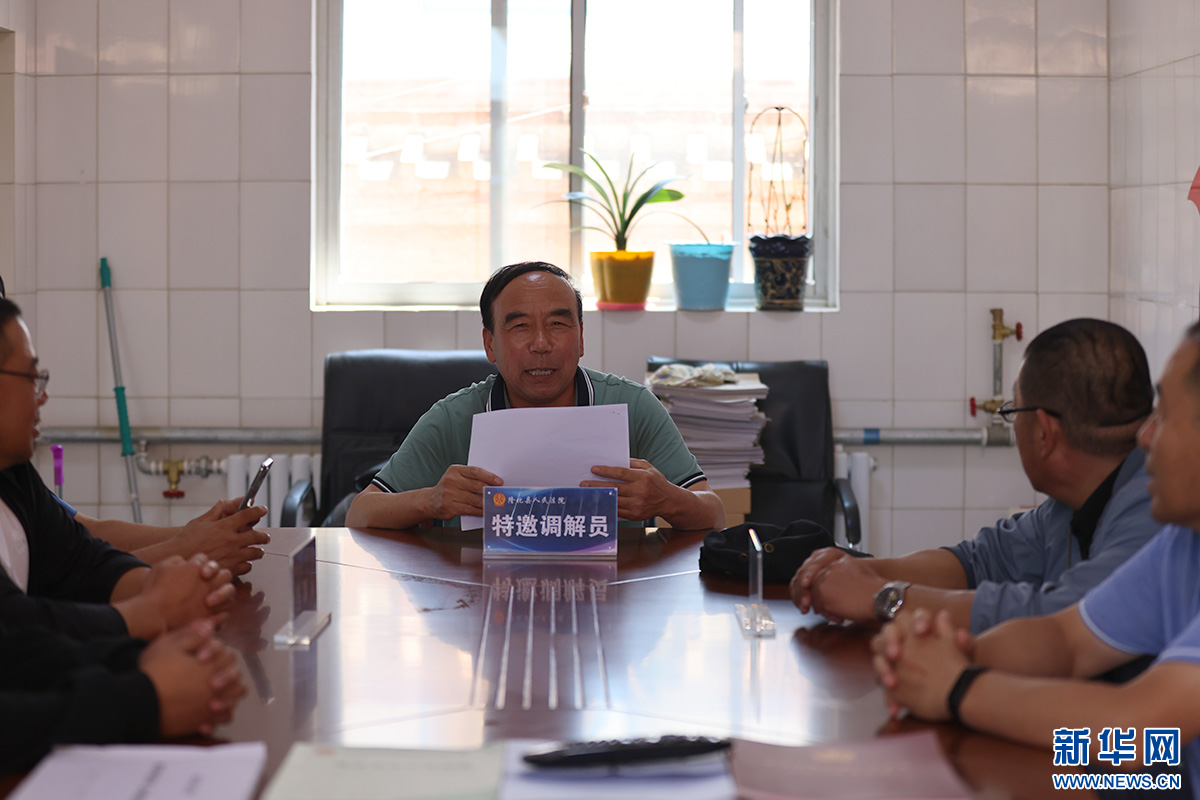 龐自強(qiáng)為村民調(diào)解案件。新華網(wǎng)發(fā)