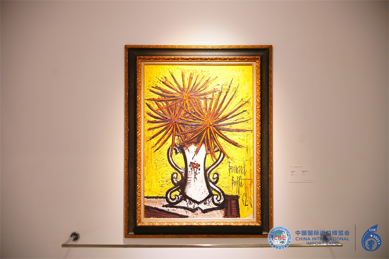 佳士得展臺(tái)展出了法國(guó)表現(xiàn)主義畫(huà)家貝爾納?布菲(Bernard Buffet)1962年創(chuàng)作的油彩畫(huà)《大麗花》。