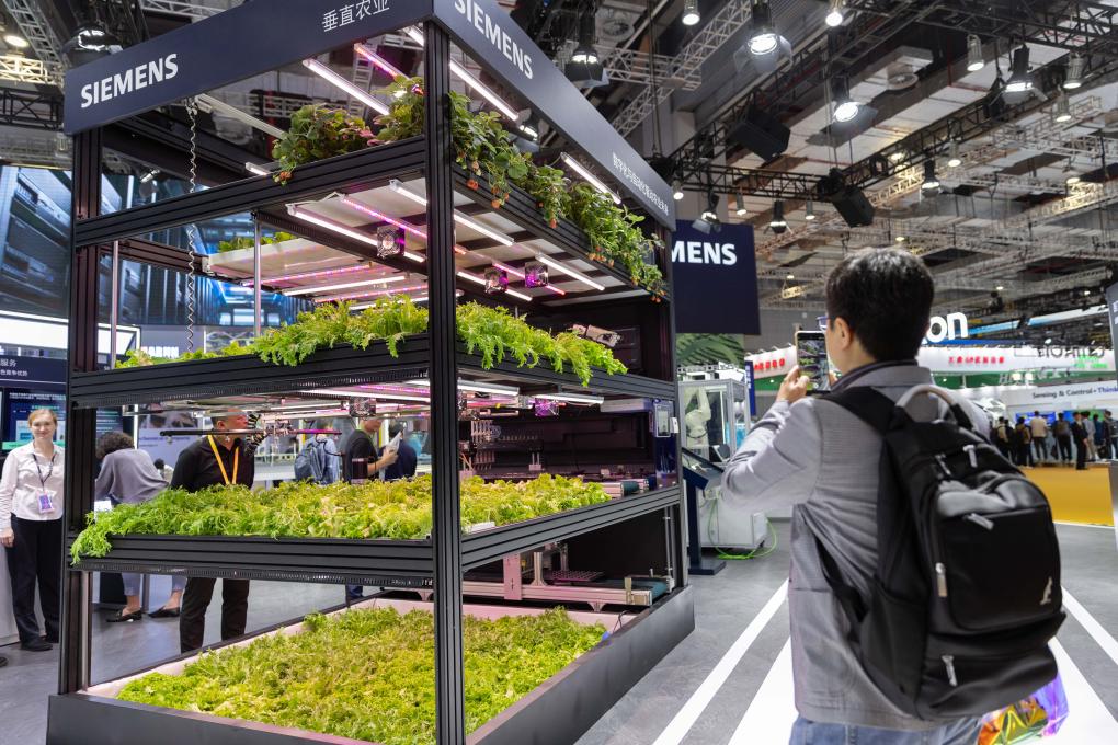 11月9日,觀眾在西門子展位拍攝智慧植物工廠。新華社記者 王翔 攝