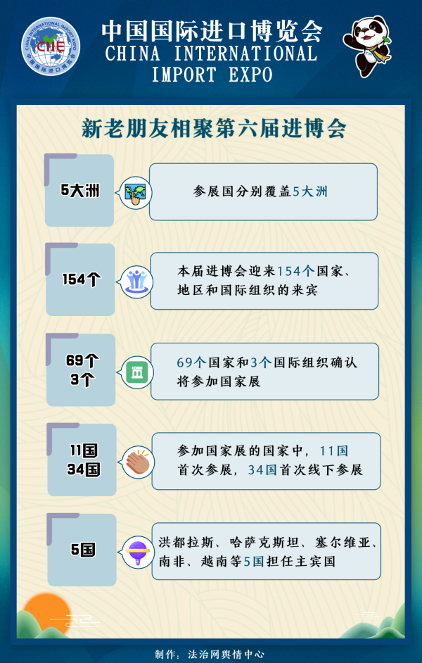 本屆進(jìn)博會(huì)將迎來154個(gè)國(guó)家、地區(qū)和國(guó)際組織的來賓。其中國(guó)家展的參展國(guó)別覆蓋五個(gè)大洲。69個(gè)國(guó)家和3個(gè)國(guó)際組織確認(rèn)將參加國(guó)家展。其中,11國(guó)首次參展,34國(guó)首次線下參展,洪都拉斯、哈薩克斯坦、塞爾維亞、南非、越南等5國(guó)擔(dān)任主賓國(guó)。