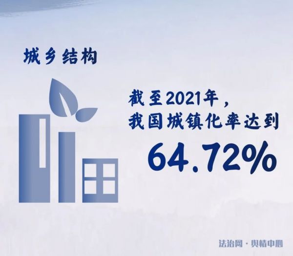 從城鄉(xiāng)結(jié)構(gòu)來看,1982年,我國(guó)是一個(gè)農(nóng)村人口占總?cè)丝?0%的典型農(nóng)業(yè)型國(guó)家。此后,通過不斷健全各項(xiàng)制度,多舉措改革創(chuàng)新,提高社會(huì)流動(dòng)性,使得中國(guó)社會(huì)走上了城市化發(fā)展道路,城市活力得到了進(jìn)一步釋放。我國(guó)實(shí)現(xiàn)了從落后的鄉(xiāng)村型社會(huì)向富足的城鄉(xiāng)融合型社會(huì)轉(zhuǎn)變。截至2021年,我國(guó)城鎮(zhèn)化率達(dá)到了64.72%。