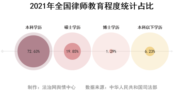 從教育程度來(lái)看,高學(xué)歷是律師隊(duì)伍典型特征,本科及以上學(xué)歷占比達(dá)93.77%。