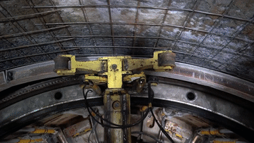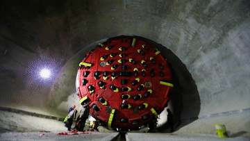 這只“巨無(wú)霸鋼鐵穿山甲”身長(zhǎng)282米,比10個(gè)籃球場(chǎng)的長(zhǎng)度還要長(zhǎng),體重2900噸,鑿山開(kāi)洞的滾刀有58把,開(kāi)挖直徑8.43米。