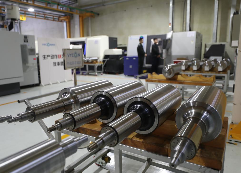 在沈陽微控新能源技術(shù)有限公司車間拍攝的由航天級合金鋼材制成的轉(zhuǎn)子(2023年11月29日攝)。新華社記者 楊青 攝