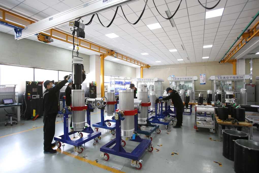 密閉的真空容器內(nèi),由航天級合金鋼材制成的轉(zhuǎn)子以每分鐘最高4.1萬轉(zhuǎn)的超音速飛馳旋轉(zhuǎn),實(shí)現(xiàn)動(dòng)能與電能的高效轉(zhuǎn)換……得益于這項(xiàng)磁懸浮飛輪儲(chǔ)能技術(shù),大自然忽強(qiáng)忽弱的風(fēng)、明暗不定的光,都能變成穩(wěn)定輸出的“綠電”。