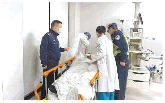 圖為警醫(yī)聯(lián)動啟動后,現(xiàn)場民警和大隊值班領(lǐng)導(dǎo)趕到醫(yī)院協(xié)同醫(yī)生救治傷員。
