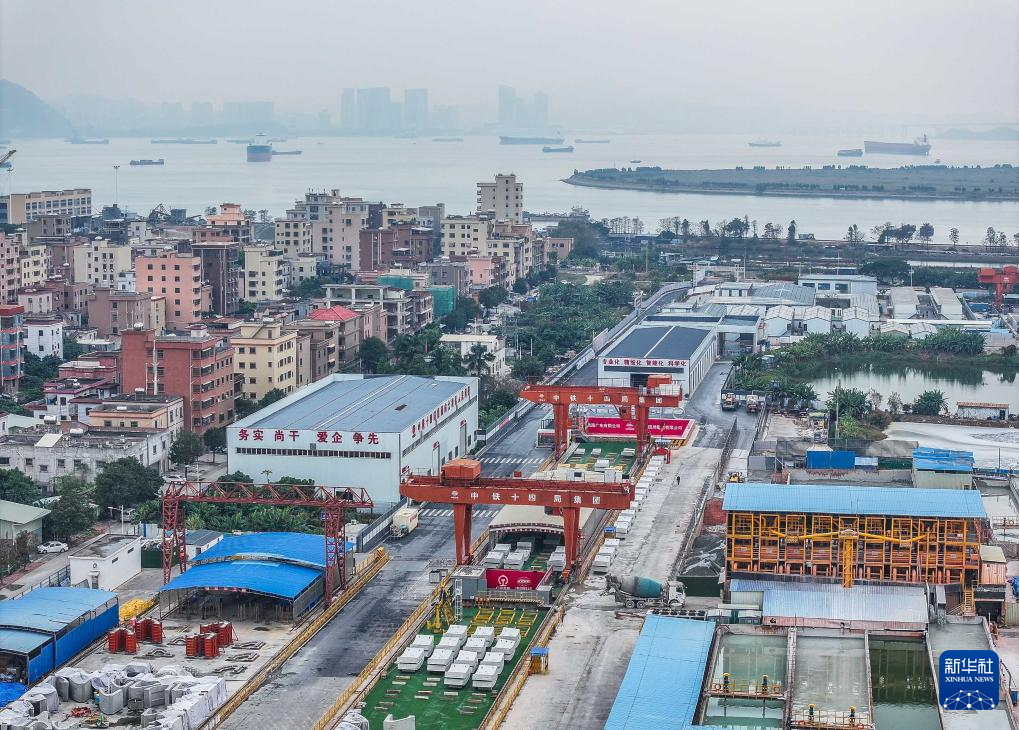 深江鐵路珠江口隧道東莞虎門段盾構(gòu)起點(1月29日攝,無人機照片)。深江鐵路建成通車后將把深圳、東莞、廣州、中山、江門這五座大灣區(qū)城市更緊密連接在一起,實現(xiàn)深圳前海自貿(mào)區(qū)與廣州南沙自貿(mào)區(qū)半小時高鐵互聯(lián)互通,助力打造“軌道上的大灣區(qū)”。