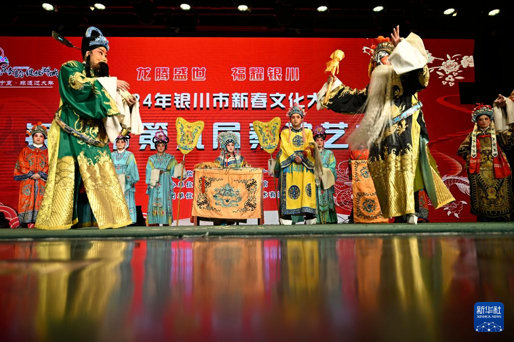 當日,“龍騰盛世 福耀銀川”2024年銀川市新春文化大集系列活動——“梅花秦韻·綻放湖城”銀川市第九屆秦腔藝術節(jié)在銀川市秦腔傳承保護基地劇場開幕。藝術節(jié)期間將有來自陜西、甘肅、青海、寧夏等地的秦腔院團、中國戲劇梅花獎演員參與交流演出,帶來《周仁回府》《大升官》《金麒麟》《雙官誥》等經(jīng)典傳統(tǒng)劇目,讓戲迷們在家門口看大戲、過大年。
