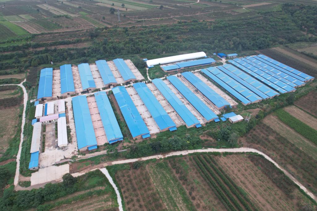 陜西省潼關(guān)縣歐家城村占地120畝的肉鴨養(yǎng)殖場(chǎng)航拍照片。(受訪者供圖)