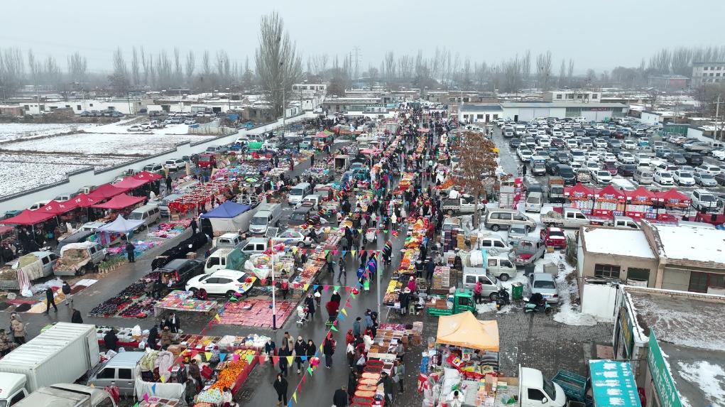 雪后的金貴集貿(mào)市場。新華社記者 劉海 攝