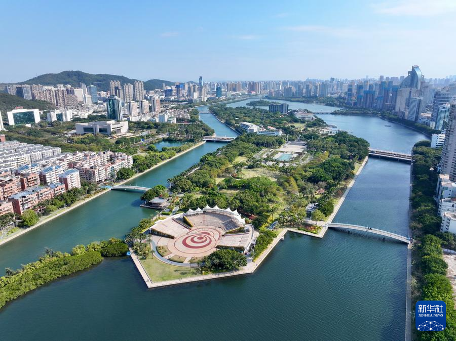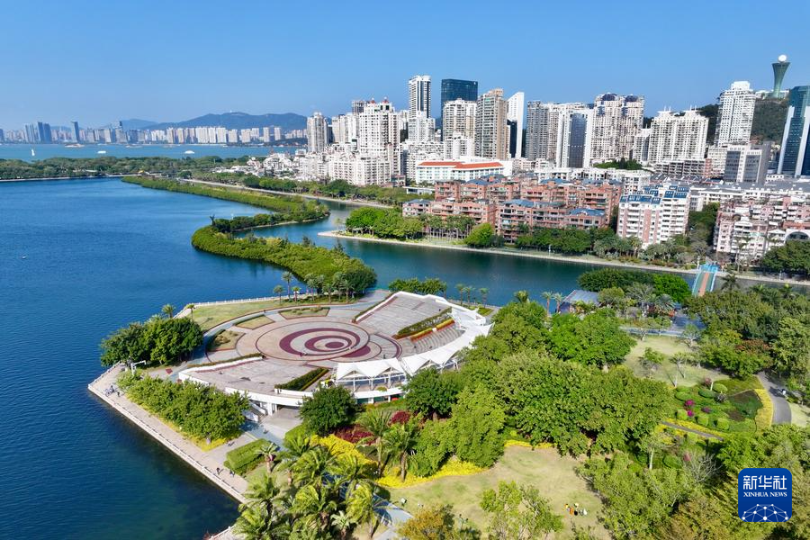 這是1月24日拍攝的廈門(mén)筼筜湖白鷺洲公園及周邊城市景觀(無(wú)人機(jī)照片)。新華社記者 姜克紅 攝