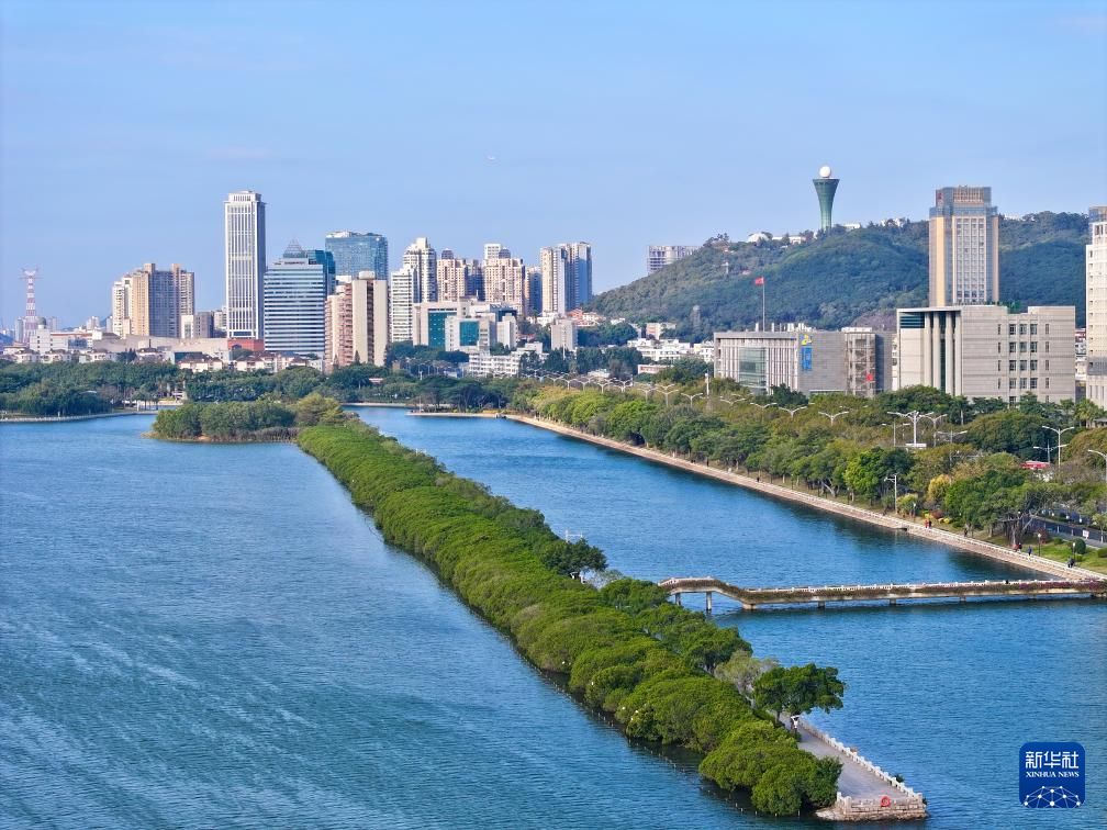 這是1月24日拍攝的廈門筼筜湖湖心島周邊城市生態(tài)景觀(無人機全景照片)。新華社記者 姜克紅 攝