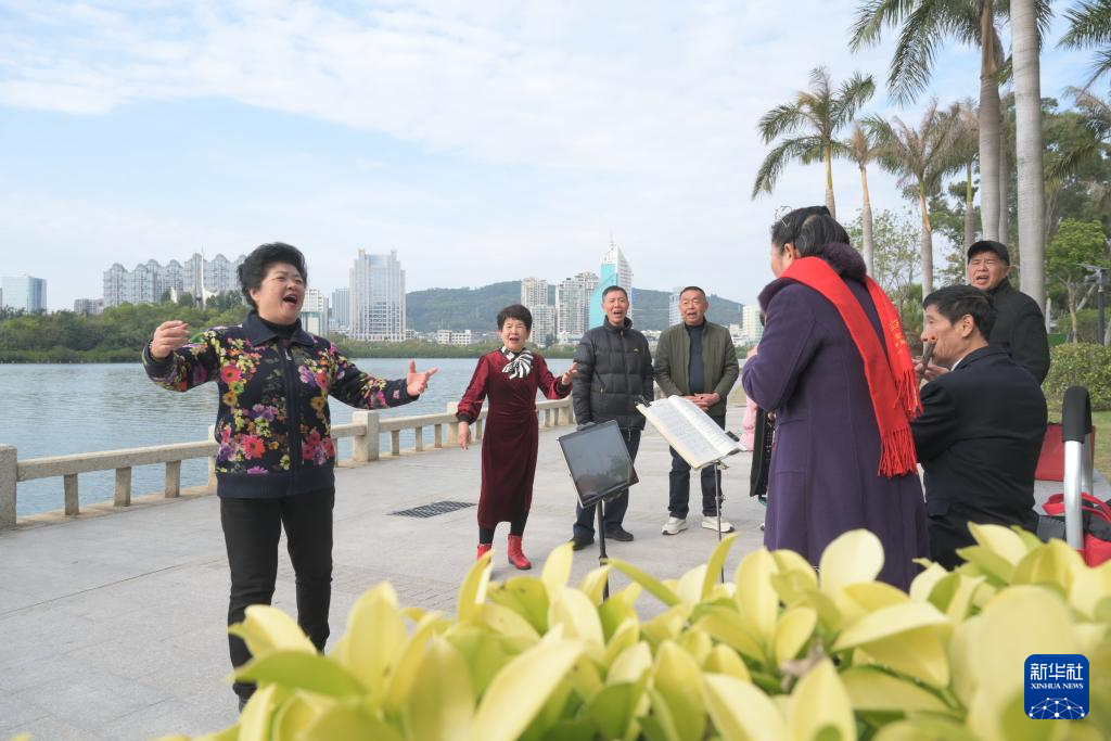 1月24日,市民在廈門筼筜湖邊的南湖公園開展娛樂活動。新華社記者 林善傳 攝