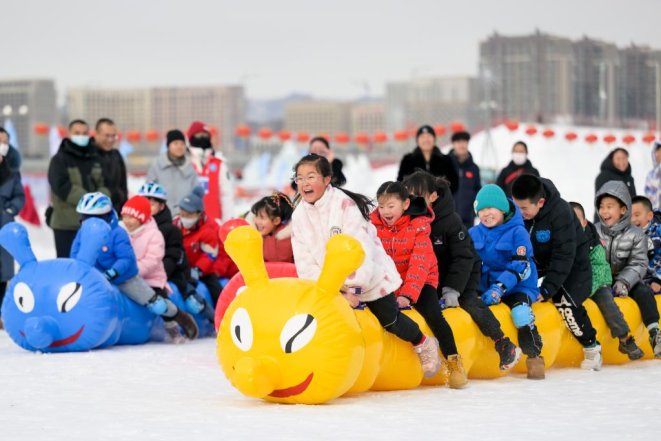 2月1日,小朋友在呼和浩特市東河冰場參與冰雪親子趣味運(yùn)動會。新華社記者 李志鵬 攝