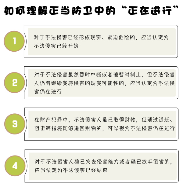 三、輿論聚焦兩個問題:如何理解“正在進行”?什么是“防衛(wèi)過當(dāng)”?