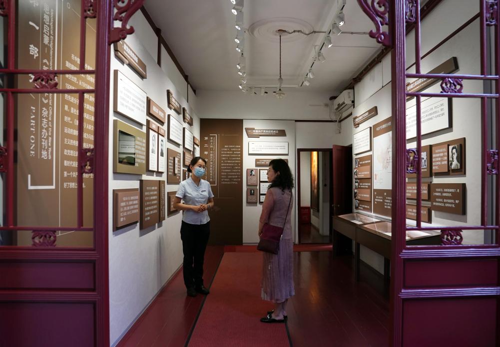 圖為觀眾在中國(guó)共產(chǎn)黨發(fā)起組成立地(《新青年》編輯部)舊址內(nèi)參觀。新華社記者 劉穎 攝