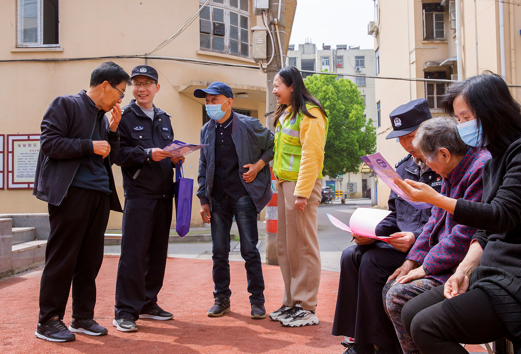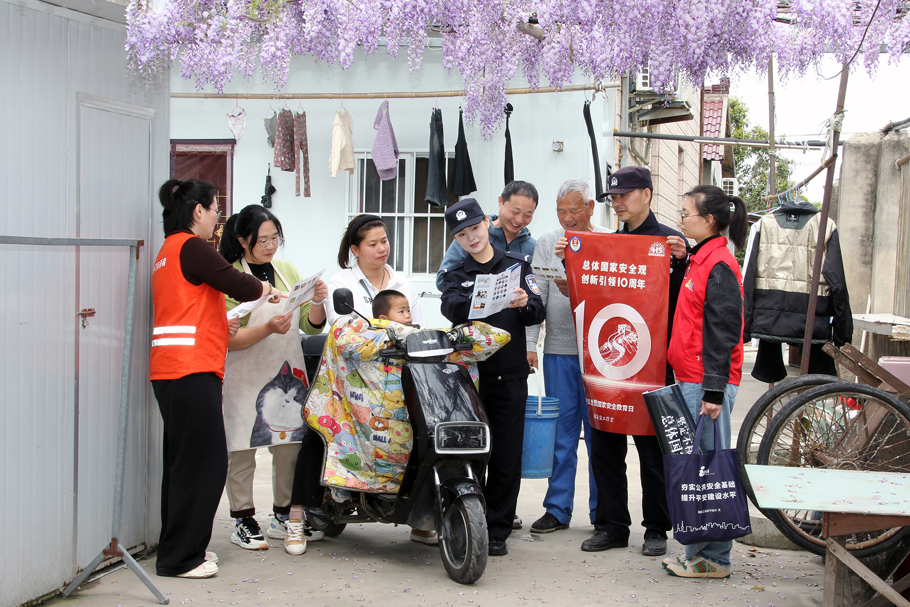 圖為4月11日,民警輔警會同工業(yè)區(qū)平安辦工作人員、平安志愿者在轄區(qū)開展國家安全知識宣傳。