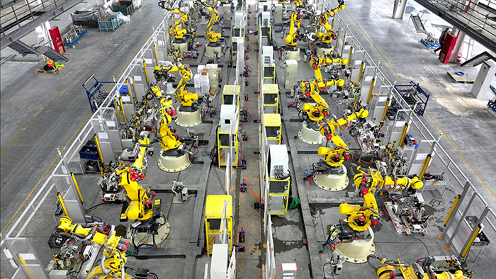 在安徽翊洋汽車零部件有限公司,機(jī)械臂正在加工汽車零部件