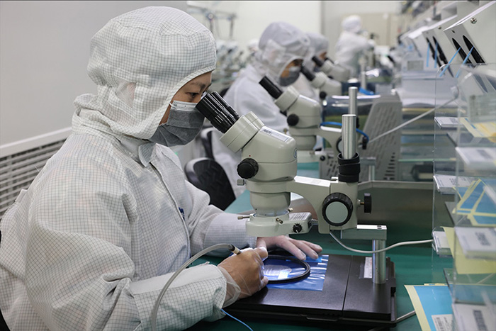 安徽格恩半導(dǎo)體有限公司技術(shù)人員正在操作生產(chǎn)設(shè)備