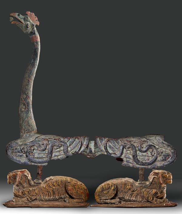 武王墩一號墓出土的鳳鳥虎座鼓架。