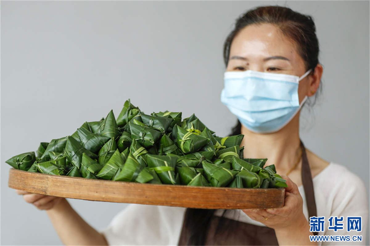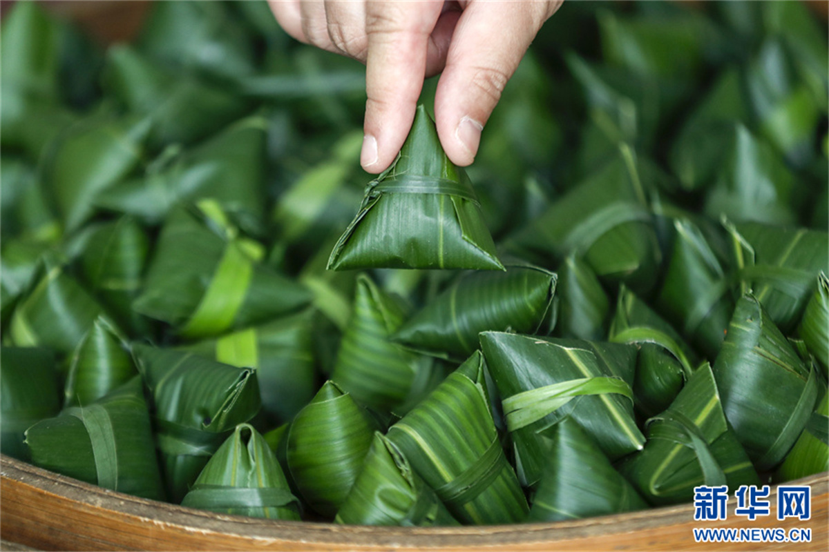 端午臨近,在安徽省黃山市祁門縣古溪鄉(xiāng)際源村,茶工以祁門紅茶為“餡料”,用傳統(tǒng)包粽子的方法,純手工制作“粽茶”?!棒詹琛毙∏闪岘?,浸泡出來的茶湯,既有箬葉香,又有紅茶香,好看又好喝的“粽茶”,深受消費(fèi)者的喜愛。新華網(wǎng)發(fā)(施亞磊 攝)