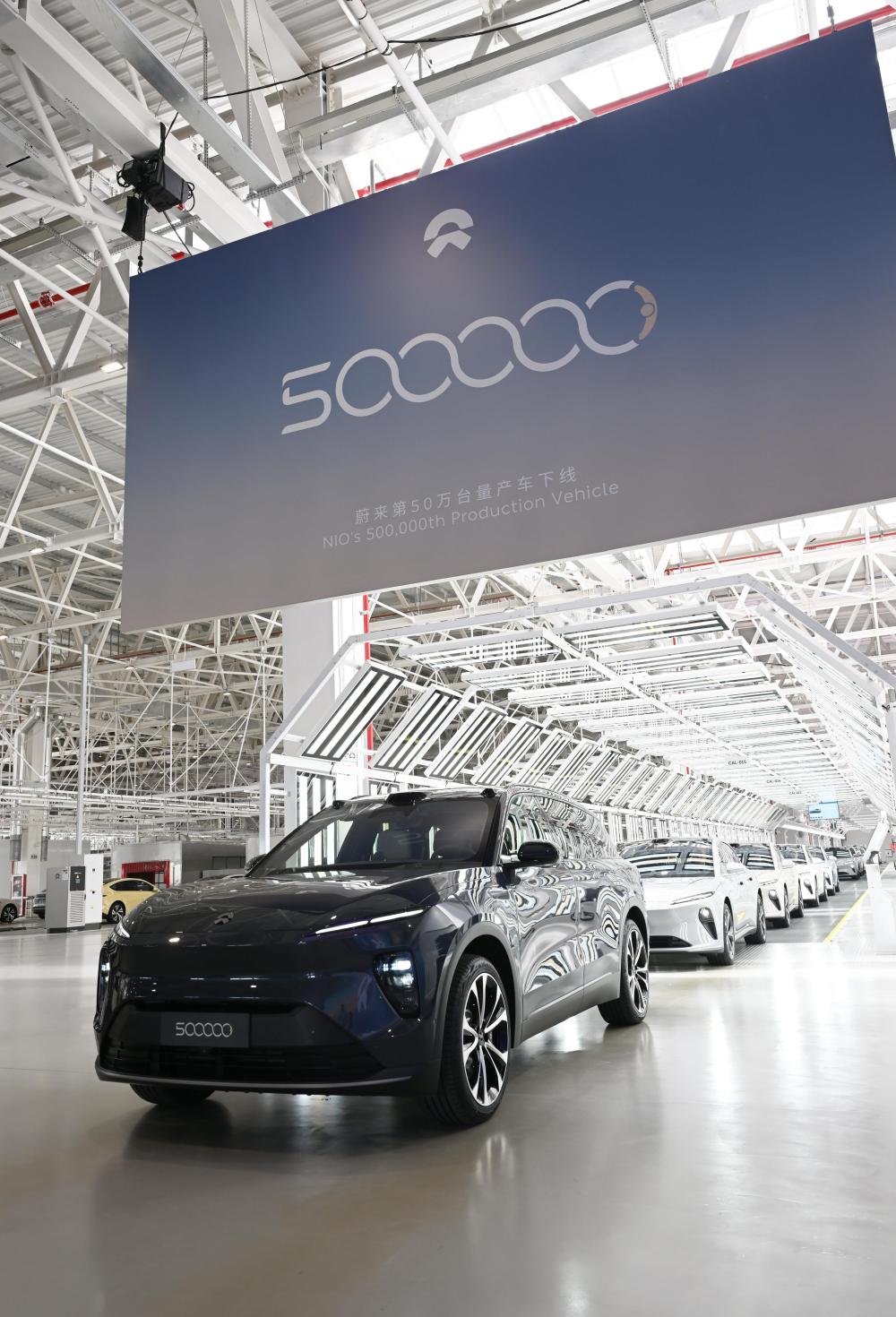 在安徽省合肥市新橋智能電動汽車產(chǎn)業(yè)園蔚來合肥第二工廠,蔚來第50萬臺量產(chǎn)車下線(2024年5月9日攝)。新華社記者 周牧 攝
