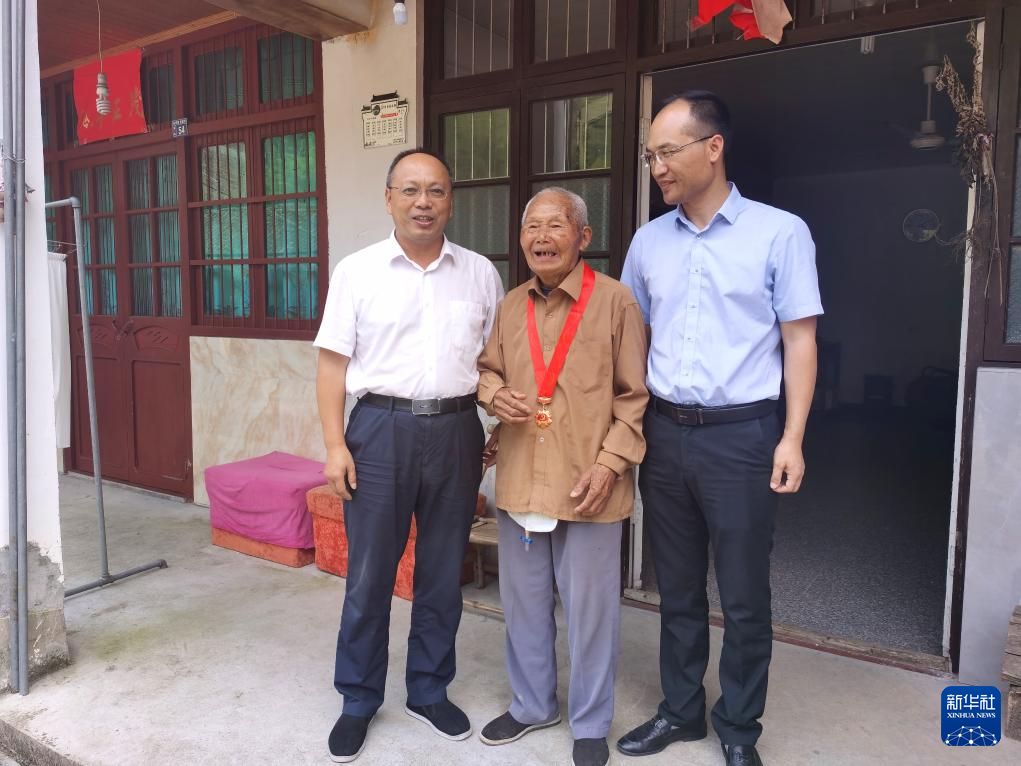 2021年6月25日,徐利民(左一)在浙江省金華市浦江縣基層慰問老黨員。新華社發(fā)