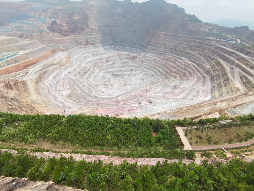 在位于福建省龍巖世界地質(zhì)公園內(nèi)的紫金山金銅礦區(qū)行進(jìn),猶如走進(jìn)一座森林公園。數(shù)百米深的礦坑底部雖然仍在生產(chǎn),而礦區(qū)一點(diǎn)兒見不到傳統(tǒng)礦山環(huán)境“臟亂差”的痕跡,坑口附近的邊坡已草叢蔥郁。