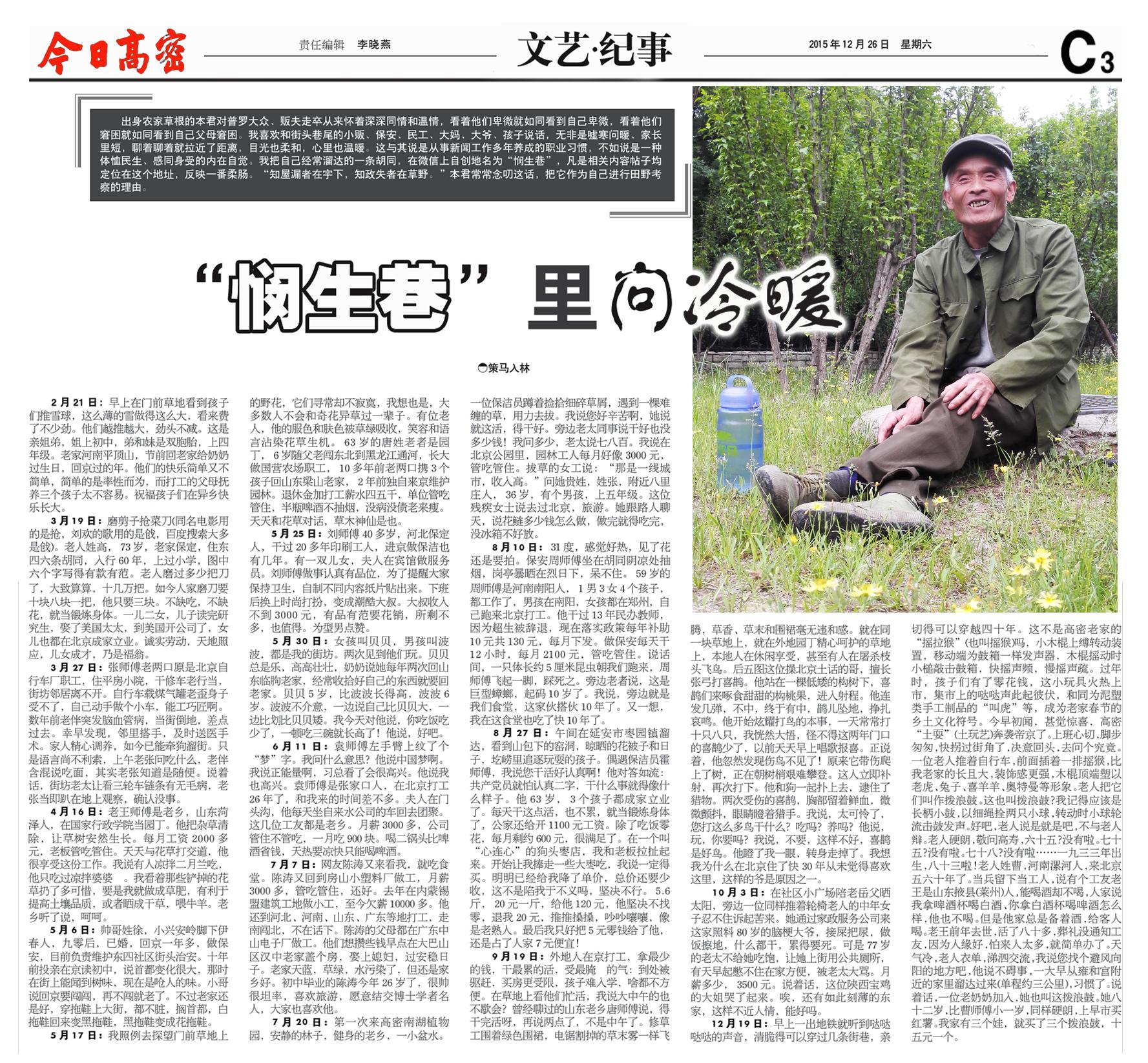 2015年12月26日,《今日高密》刊發(fā)《“憫生巷”里問(wèn)冷暖》。