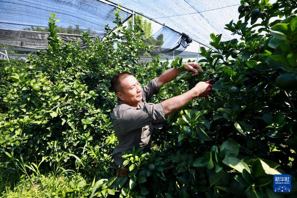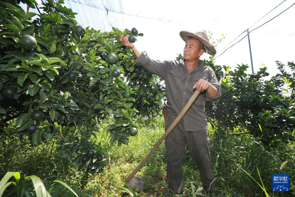 8月12日,福建南平市延平區(qū)爐下鎮(zhèn)斜溪村村民王崇年在護理果園?!⌒氯A社記者 姜克紅 攝