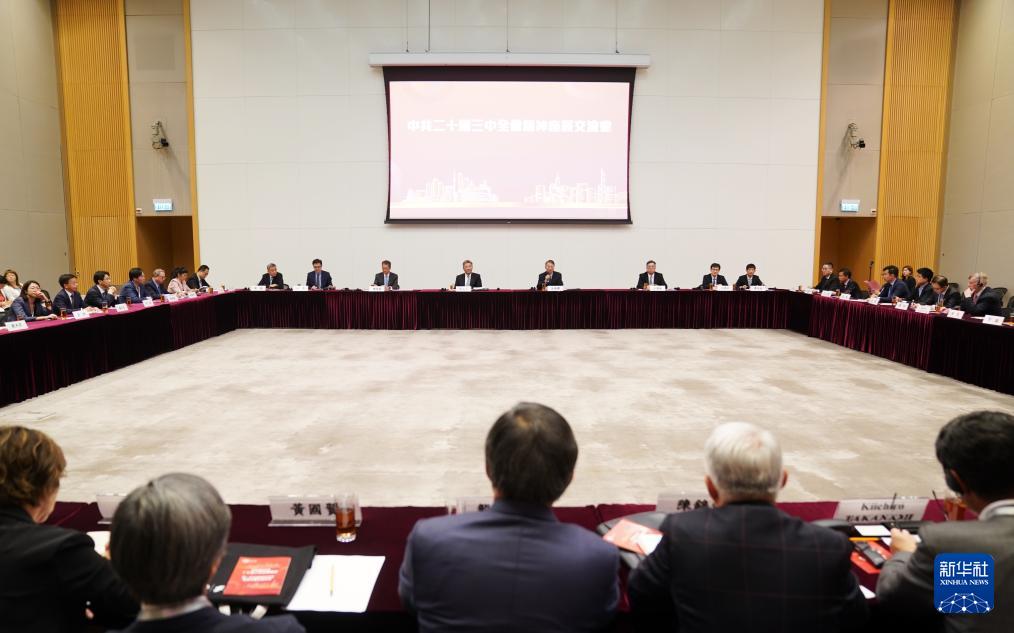 8月27日,學(xué)習(xí)貫徹黨的二十屆三中全會精神中央宣講團(tuán)在香港特別行政區(qū)與香港工商界、創(chuàng)科界代表舉行座談交流。新華社記者 王申 攝