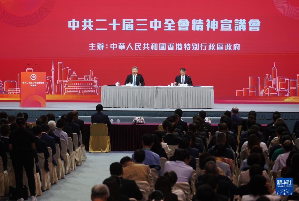 8月25日,學(xué)習(xí)貫徹黨的二十屆三中全會精神中央宣講團(tuán)在香港特別行政區(qū)為中央駐港機(jī)構(gòu)和中資企業(yè)進(jìn)行宣講。新華社記者 朱煒 攝