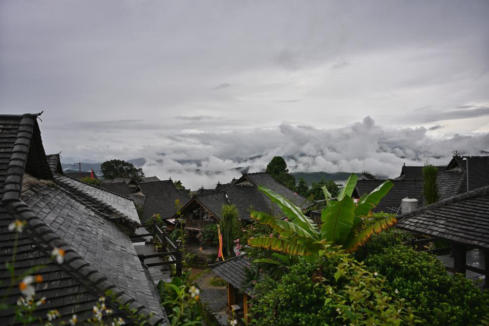 在景邁山的翁基古寨,雨水時(shí)而滂沱、時(shí)而淅瀝,游客卻依舊不少。惠民鎮(zhèn)芒景村村民張光明經(jīng)營的客棧,也入住了多位游客。