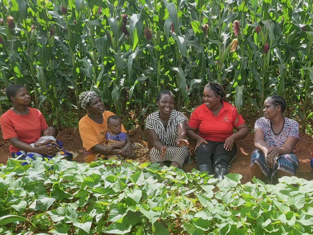 “中非科技小院”留學(xué)生庫瓦莉(右二)在馬拉維鄉(xiāng)村和農(nóng)民們一起討論中國“大豆—玉米間作技術(shù)”(2月5日攝)。新華社發(fā)(受訪者供圖)