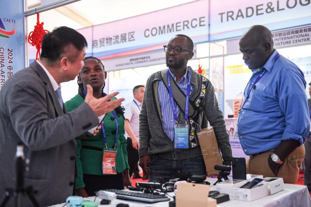 5月9日,參展商在肯尼亞首都內(nèi)羅畢舉辦的中非經(jīng)貿(mào)博覽會(huì)走進(jìn)非洲巡展上與來賓交談。新華社記者李亞輝 攝