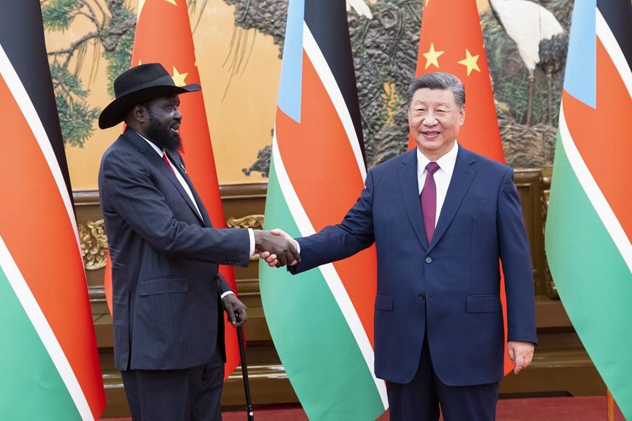9月6日晚,國家主席習(xí)近平在北京人民大會(huì)堂會(huì)見來華出席中非合作論壇北京峰會(huì)的南蘇丹總統(tǒng)基爾。