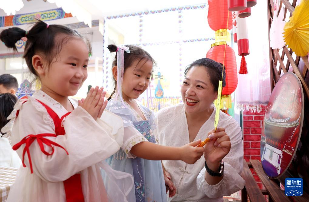 當(dāng)日,河北省石家莊市藁城區(qū)通安幼兒園開展迎中秋幼兒民俗主題活動,孩子們在老師的指導(dǎo)下做月餅、猜燈謎,感受傳統(tǒng)民俗的魅力。