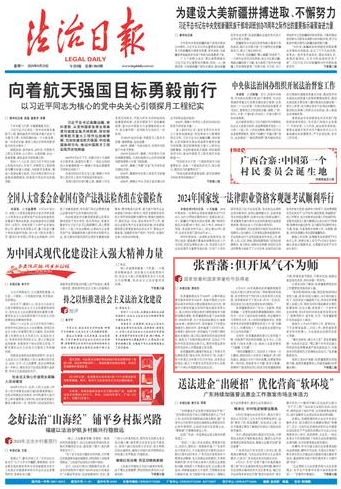 他每天上午8點半準時工作,直到12點,下午還要準備第二天的工作。他希望培養(yǎng)更多的年輕博士,為全面依法治國作出更大貢獻。