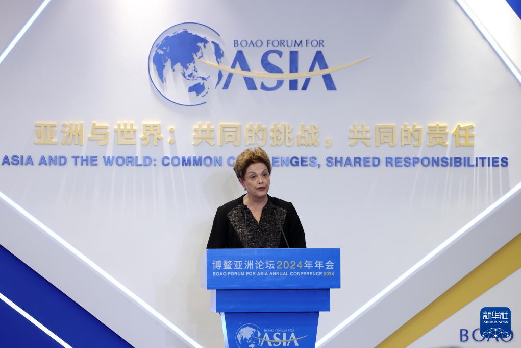 ??2024年3月27日,新開(kāi)發(fā)銀行行長(zhǎng)迪爾瑪·羅塞芙在博鰲亞洲論壇2024年年會(huì)“全球南方的興起”分論壇上致辭。 新華社記者 唐如峰 攝