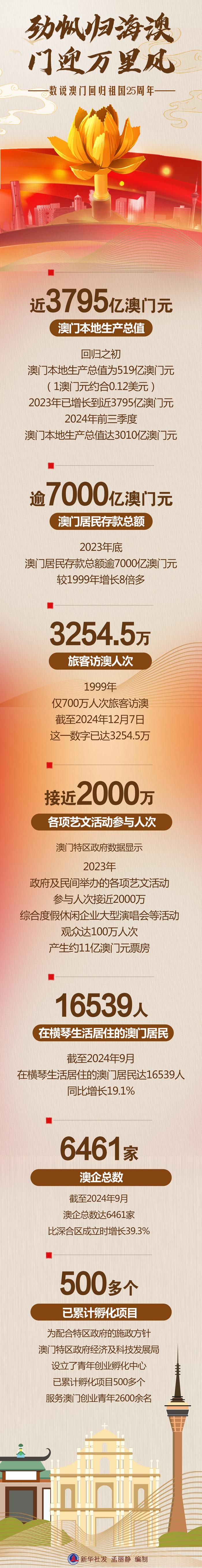 回歸祖國25年來,在“一國兩制”方針指引下,在中央政府和祖國內地的大力支持下,澳門實現(xiàn)向現(xiàn)代化國際都市的華麗轉身。澳門特別行政區(qū)政府與社會各界攜手并進,積極探索適合自身的發(fā)展路徑,在經(jīng)濟、民生等領域取得顯著成就。 新華社發(fā) 孟麗靜 編制