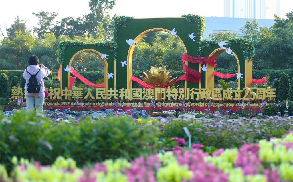 國旗區(qū)旗迎風飄揚,條幅海報遍布街頭巷尾,豐富多彩的慶?;顒虞喎菆觥B日來,澳門處處洋溢歡樂喜慶的氣氛,全城熱烈慶祝回歸祖國25周年。