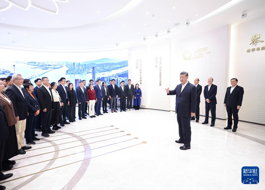 12月19日上午,中共中央總書記、國家主席、中央軍委主席習(xí)近平在澳門特別行政區(qū)行政長官賀一誠陪同下,來到橫琴粵澳深度合作區(qū)考察。這是習(xí)近平在橫琴天沐琴臺展示廳考察時,同參與橫琴粵澳深度合作區(qū)規(guī)劃、建設(shè)、管理、服務(wù)等各方面代表親切交流。