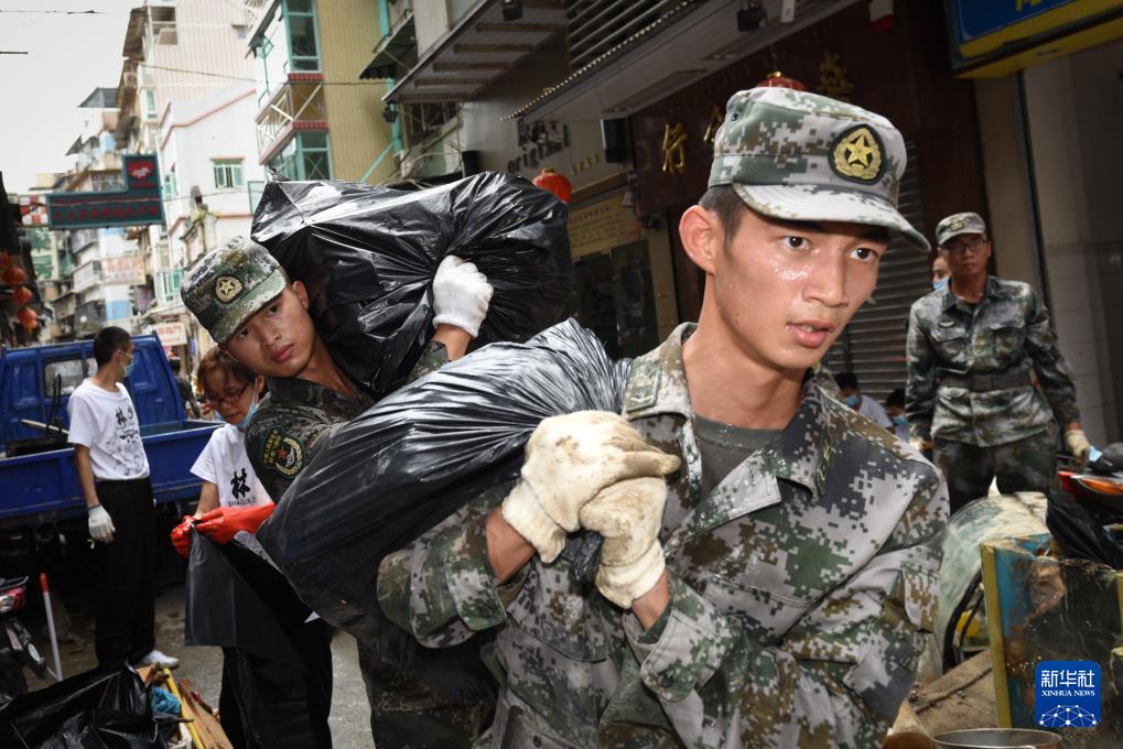 駐澳門部隊(duì)官兵參加“天鴿”臺(tái)風(fēng)救援活動(dòng)(2017年8月25日攝)。新華社發(fā)(葉華敏 攝)