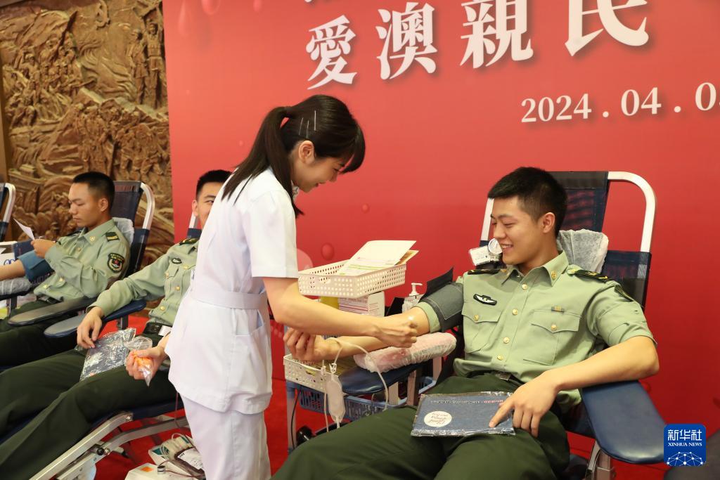 4月3日,駐澳門部隊(duì)官兵積極參加無償獻(xiàn)血活動(dòng)。新華社發(fā)(陳帥 攝)