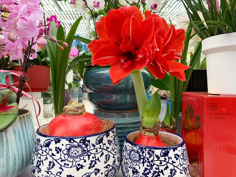 “時(shí)代在變化,包裝也很重要?!睌傊骱闻扛嬖V記者,今年蠟封朱頂紅很受歡迎。所謂蠟封,即用紅蠟將朱頂紅“蔥頭”般的根部包裹起來(lái),更有喜慶、吉祥之感。