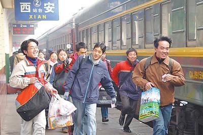 2004年,放假回家的大學生在西安火車站趕火車。焦宏濤攝(影像中國)
