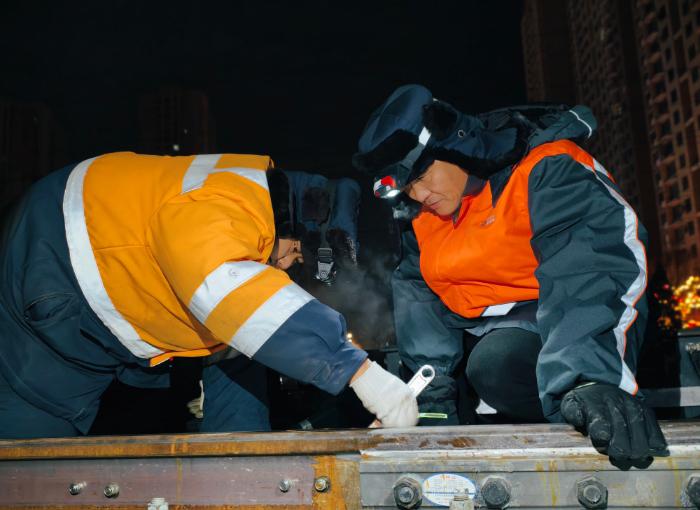 “天黑,大家注意腳下,防止滑倒,注意人身安全。”高巖囑咐著工友,自己則一邊向前走,一邊觀察每一處設(shè)備外觀狀態(tài),走到138號道岔時,他蹲下身子,從工具包里掏出扳手,開始仔細地檢查每一處螺栓,發(fā)現(xiàn)一處關(guān)鍵螺栓有松動跡象,他立即緊固好,呼出的熱氣在睫毛上凝結(jié)成冰碴,模糊了視線,他就趁著起身的間隙,用袖子匆匆擦一把。