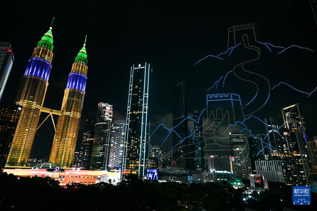 1月25日,在馬來西亞吉隆坡舉行的2025年“歡樂春節(jié)”全球啟動儀式前,無人機展示“中馬友誼萬歲”字樣。