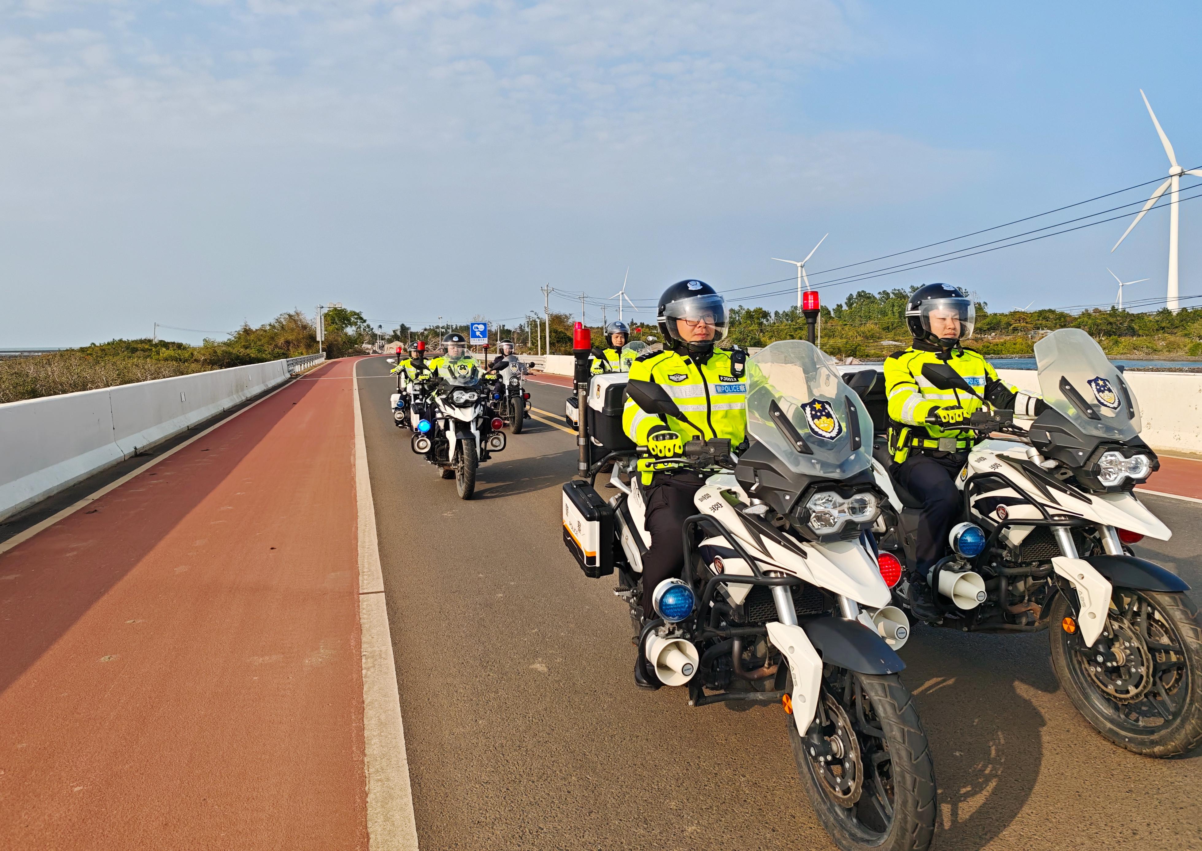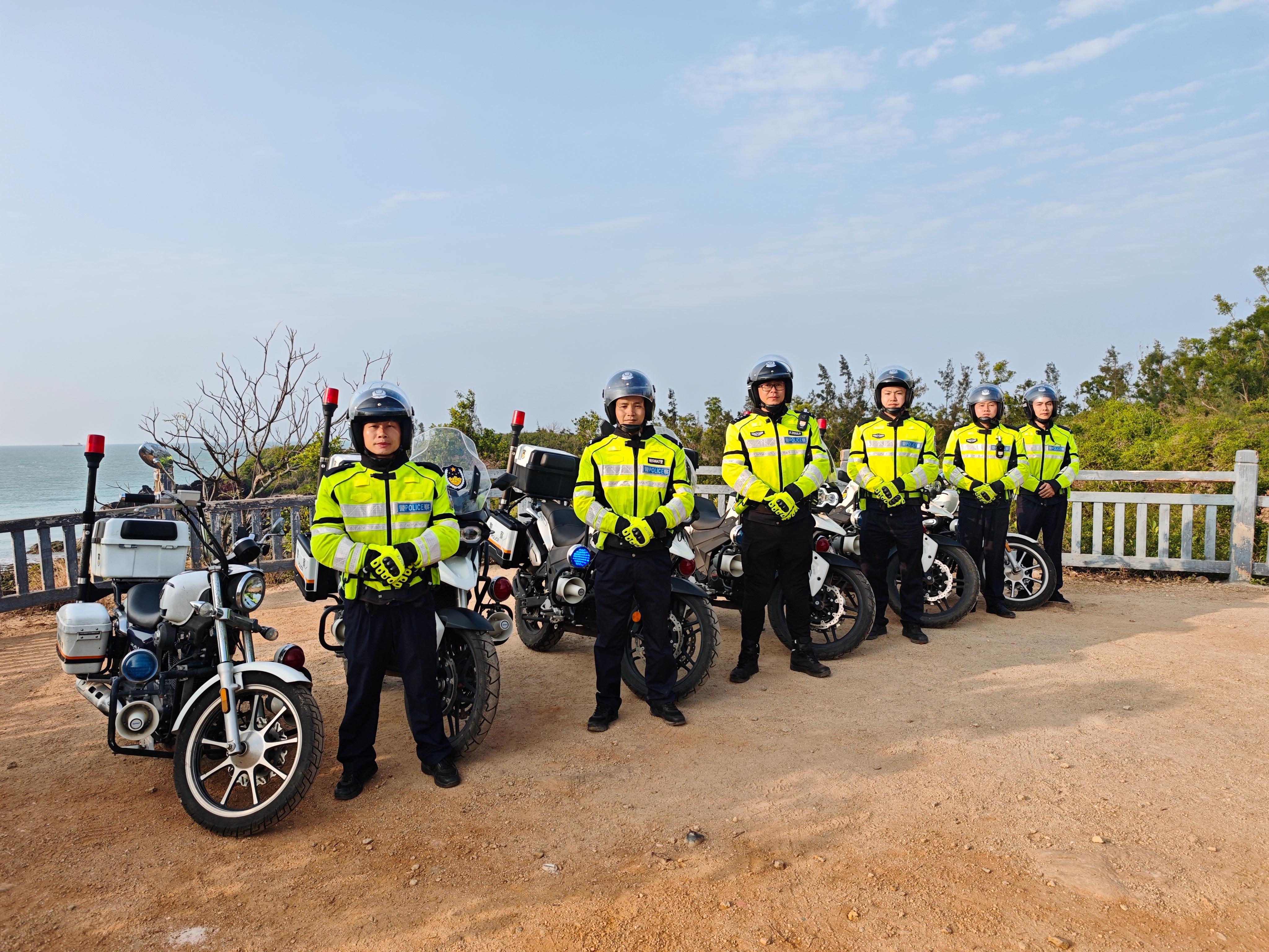 省公安廳反走私和管理總隊第七支隊警用摩托車巡邏小分隊在環(huán)島旅游公路峨蔓路段有序開展巡邏