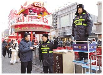 在中街知名的頭條胡同,一組由沈河公安分局統(tǒng)一部署的五里河派出所警力正維持秩序,五光十色的老字號(hào)小吃美食牌匾下,游客安全有序地游中街、品美食,映射出沈城平安、和諧、幸福的歡度佳節(jié)景象。